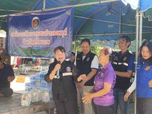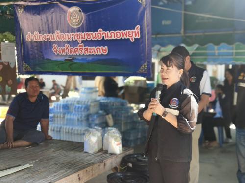 นางทรัพย์สิน โพธิ์ขาว พัฒนาการจังหวัดศรีสะเกษพร้อมด้วยพัฒนาการอำเภอพยุห์และเจ้าหน้าที่สำนักงานพัฒนาชุมชนอำเภอพยุห์ ลงพื้นที่ตรวจเยี่ยมให้กำลังใจผู้อพยพศูนย์พักพิงชั่วคราววัดกระแซง และร่วมกับผู้นำอช.อำเภอพยุห์ สาธิตการทำน้ำยาล้างจาน